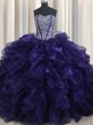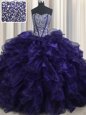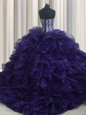 Comfortable With Train Lace Up Sweet 16 Dress Purple and In for Military Ball and Sweet 16 and Quinceanera with Beading and Ruffles Brush Train