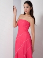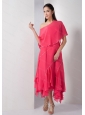 Coral Red Asymmetrical Beading Dama Dress On Sale