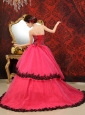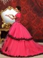 Coral Red Ball Gown Strapless Court Train Tulle Customize 2013 Quinceanera Dress