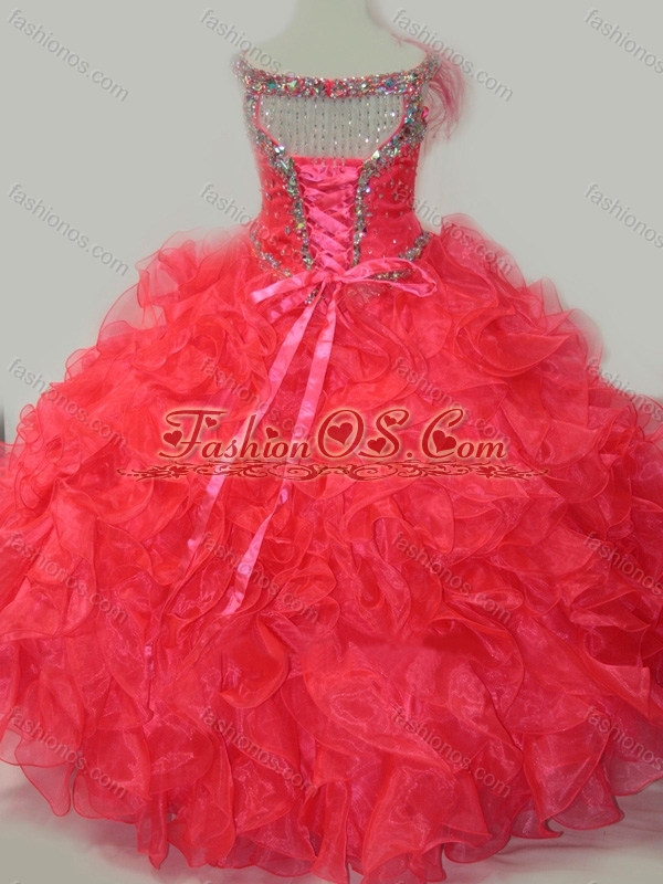 Home >  Special Occasion Dresses >  New Style Little Girl Pageant Dresses > CoraL Red Ball Gown V Neck Organza Beading Little Girl Pageant Dress with Lace Up