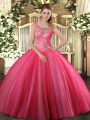 Coral Red Ball Gowns Tulle Scoop Sleeveless Beading Floor Length Lace Up Sweet 16 Quinceanera Dress