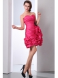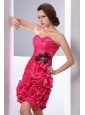 It will be a night to remember in this formal dress. This dress has an asymmetrical neckline and The form-fitting bodice with sweetheart neckline and finely ruched accents at the bust and around the empire waist creats a feminine look. A black beaded flower defines the slim waist.The ruffled skirt has asymmetrically bustled details throughout. This dazzling short dress has a slim fit that accentuates your curves, the perfect cocktail dress for the girl looking to be noticed.