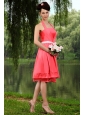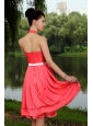 Home >  Prom Dresses >  Short Prom Dresses > Coral Red Empire Halter Prom / Homecoming Dress Elastic Woven Satin Sashes Knee-length