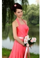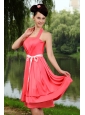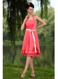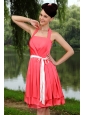 Coral Red Empire Halter Prom / Homecoming Dress Elastic Woven Satin Sashes Knee-length