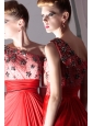 Home >  Prom Dresses >  Discount Prom Dresses > Coral Red Empire Off The Shoulder Floor-length Chiffon Beading Prom Dress