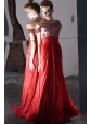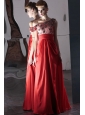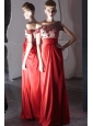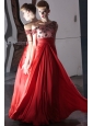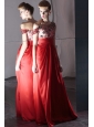 Coral Red Empire Off The Shoulder Floor-length Chiffon Beading Prom Dress