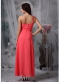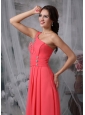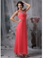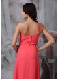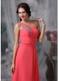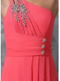 Coral Red Empire One Shoulder Prom / Evening Dress Chiffon Beading
