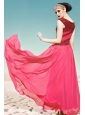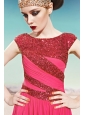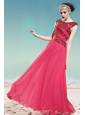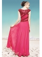 This elegent dress is accented with sparkling sequins throughout and pleated bodice.The hoop neckline shows your arms.The floor-lengthen red prom dress made of chiffon.The skirt flowing freely with the breeze.
