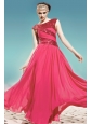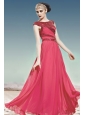 Coral Red Empire Scoop Floor-length Chiffon Ruch Prom Dress