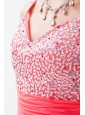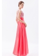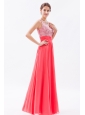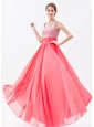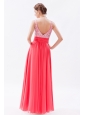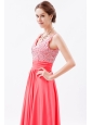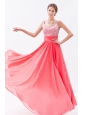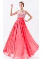 Coral Red Empire Straps Chiffon Prom Dress Beading Floor-length