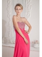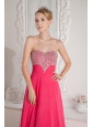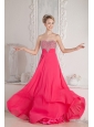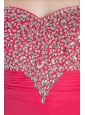 Coral Red Empire Sweetheart Beading Prom Dress Floor-length Chiffon