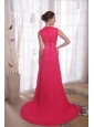 Coral Red Empire V-neck Brush /Sweep Beading Chiffon Prom/Party Dress