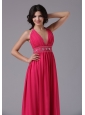 Coral Red Halter For 2013 Prom Dress In Brentwood California With Beaded Decorate Waist