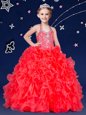 Coral Red Halter Top Neckline Beading and Ruffles Toddler Flower Girl Dress Sleeveless Zipper