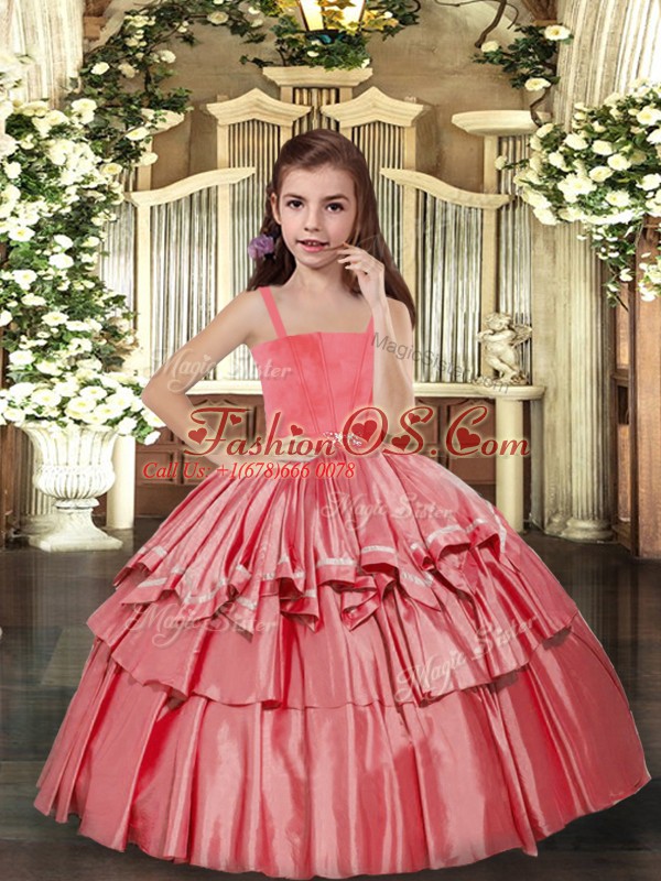 Home >  Special Occasion Dresses >  Pretty Little Girl Pageant Dresses > Coral Red Lace Up Straps Ruffled Layers Pageant Gowns For Girls Taffeta Sleeveless