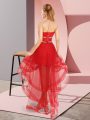 Coral Red Lace Up Womens Party Dresses Beading Sleeveless High Low