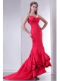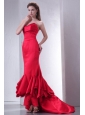 Coral Red Mermaid Sweetheart High-low Prom Dress with Ruffles