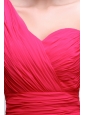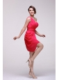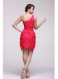 Coral Red One Shoulder Prom Dress with Ruches Mini-length