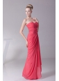 Coral Red Prom Dres With Chiffon Ruched Bodice and Sweetheart