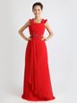 Coral Red Sleeveless Beading and Ruching Floor Length Prom Party Dress