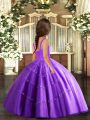 Coral Red Sleeveless Floor Length Beading Lace Up Little Girls Pageant Dress