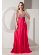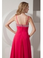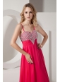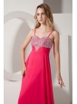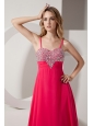 Coral Red Spaghetti Straps Beading Prom / Evening Dress Brush Train Chiffon