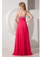 This breathtaking dress will make your day one to remember! Passion sexy are the characteristic of this amazing prom dress. The spaghetti straps and bust with a modified sweetheart overflow with shimmering beading. A ruched waist sash and V shape filled with beading adorn the mid-section of the dress, leading up to the focal point. The focal point is, no doubt, the fabulous A-line skirt. It will let you glide across the dance floor with ease. The zipper closure back give you a impressive effect.