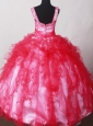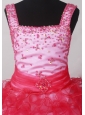 Coral Red Straps With Beading For Little Girl Pageant Dresses