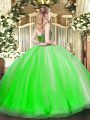 Coral Red Tulle Lace Up Scoop Sleeveless Floor Length Quinceanera Dress Beading and Ruffles