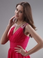 Home >  Bridesmaid Dresses >  Elegant Bridesmaid Dresses > Coral Red V-neck Bridemaid Dress With Beading Chiffon Knee-length