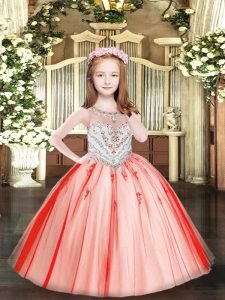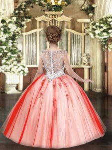 Home >  Special Occasion Dresses >  2018 Little Girl Pageant Dresses > Coral Red Zipper Kids Formal Wear Beading and Appliques Sleeveless Floor Length