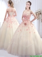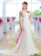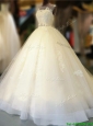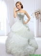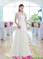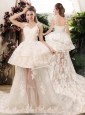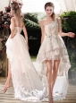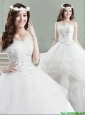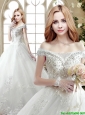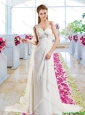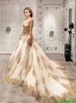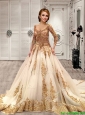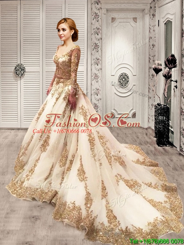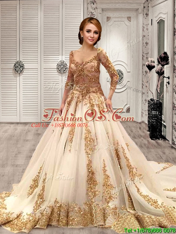 Court Train Applique and Sequined Wedding Dress with Deep V Neckline
