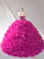 Custom Design Ball Gowns Sleeveless Fuchsia Quinceanera Gowns Brush Train Lace Up