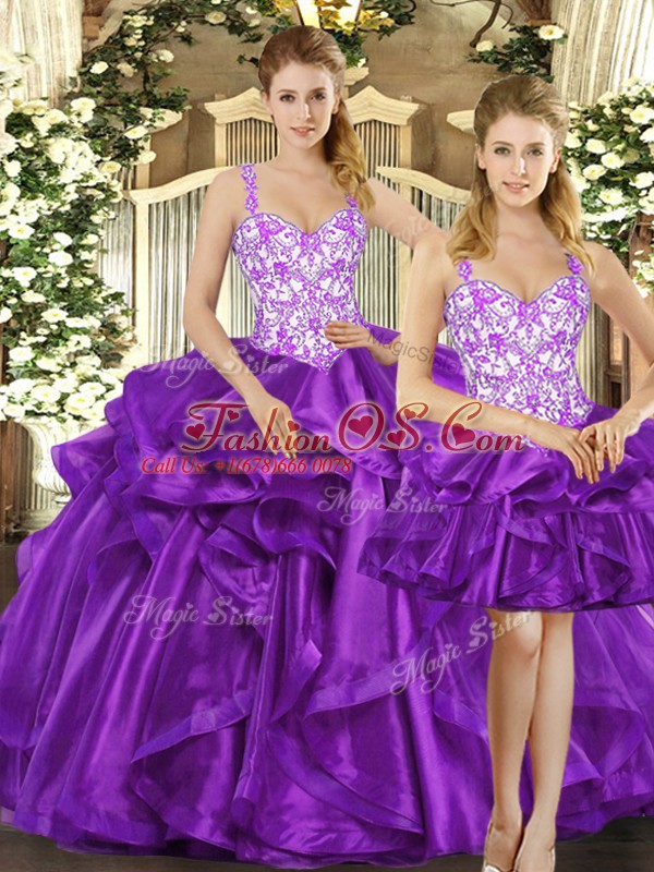 Home >  Quinceanera Dresses >  Detachable Quinceanera Skirts > Custom Design Beading and Ruffles Quinceanera Dress Eggplant Purple Lace Up Sleeveless Floor Length