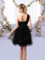 Custom Design Black A-line One Shoulder Sleeveless Tulle Mini Length Side Zipper Lace Court Dresses for Sweet 16