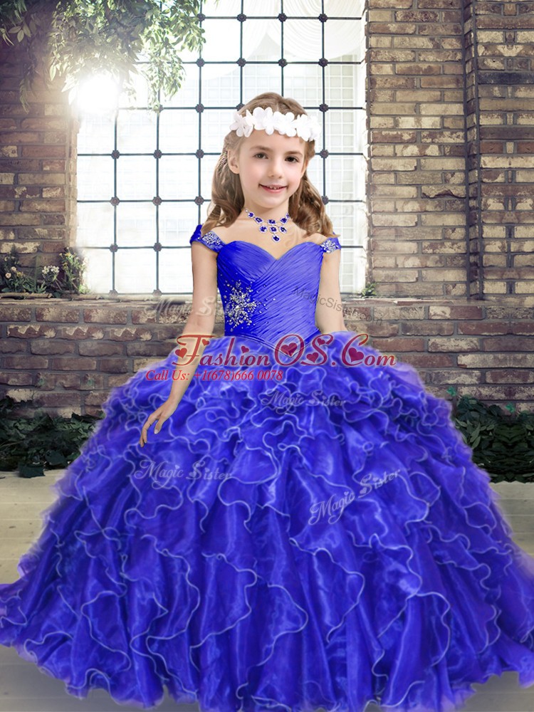 Home >  Special Occasion Dresses >  Beautiful Kids Pageant Dresses > Custom Design Blue Straps Lace Up Beading and Ruffles Pageant Gowns Sleeveless