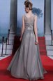 Custom Design Column/Sheath Prom Party Dress Grey Scoop Chiffon Sleeveless Floor Length Side Zipper