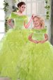 Custom Design Floor Length Ball Gowns Sleeveless Yellow Green Quinceanera Gowns Lace Up