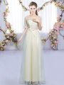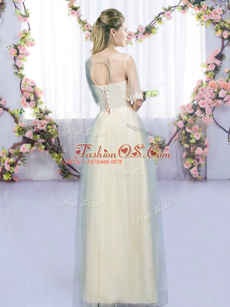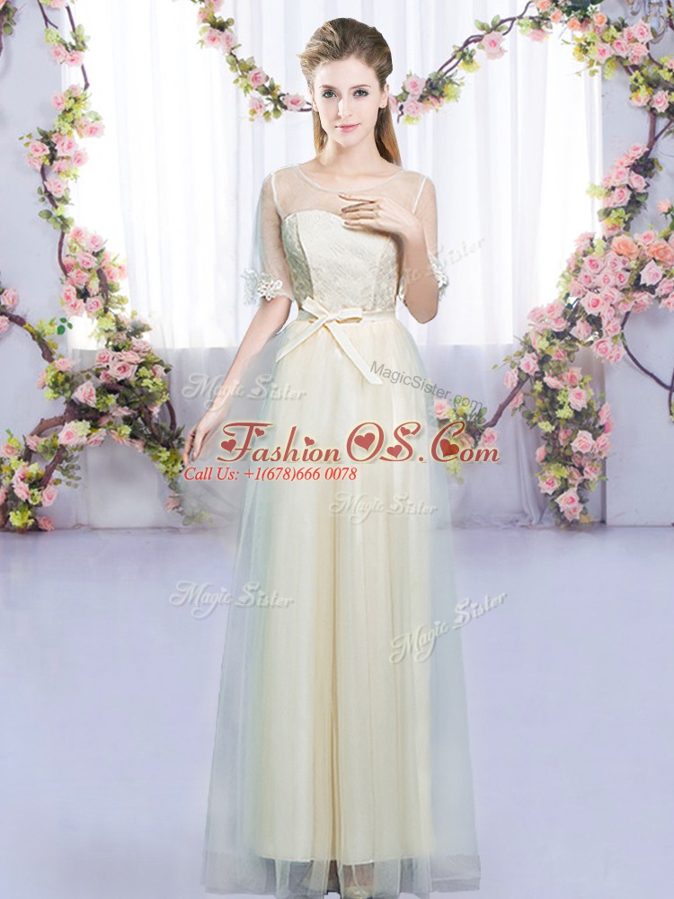 Custom Design Floor Length Lace Up Quinceanera Court of Honor Dress Champagne for Wedding Party with Lace and Bowknot