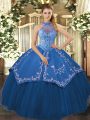 Custom Design Floor Length Lace Up Vestidos de Quinceanera Teal for Sweet 16 and Quinceanera with Beading and Embroidery