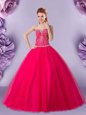 Custom Design Hot Pink Sleeveless Tulle Lace Up 15 Quinceanera Dress for Military Ball and Sweet 16 and Quinceanera