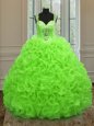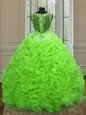 Custom Design Organza Sleeveless Floor Length Vestidos de Quinceanera and Beading and Ruffles