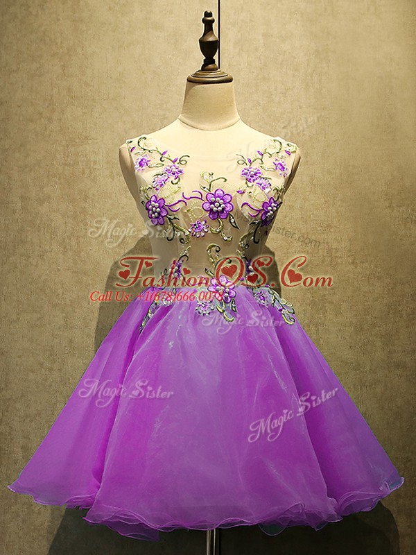 Home >  Prom Dresses >  Perfect Prom Dresses > Custom Design Purple Scoop Lace Up Embroidery Prom Dress Sleeveless