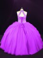 Custom Design Purple Tulle Lace Up Halter Top Sleeveless Quinceanera Dress Beading