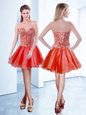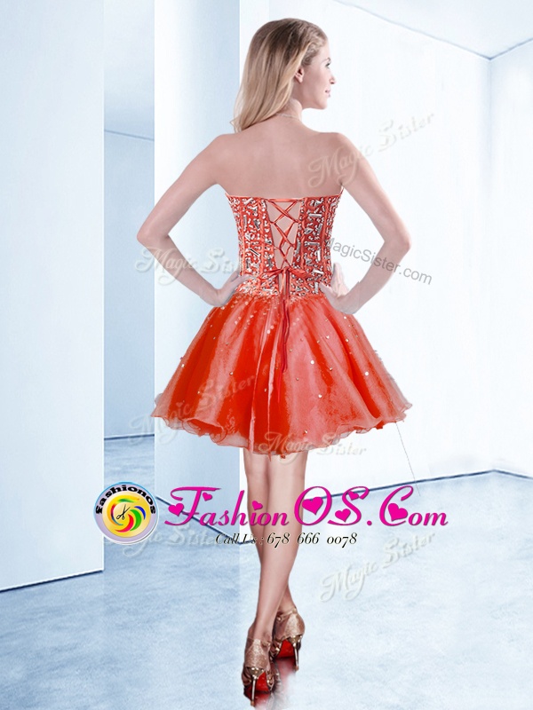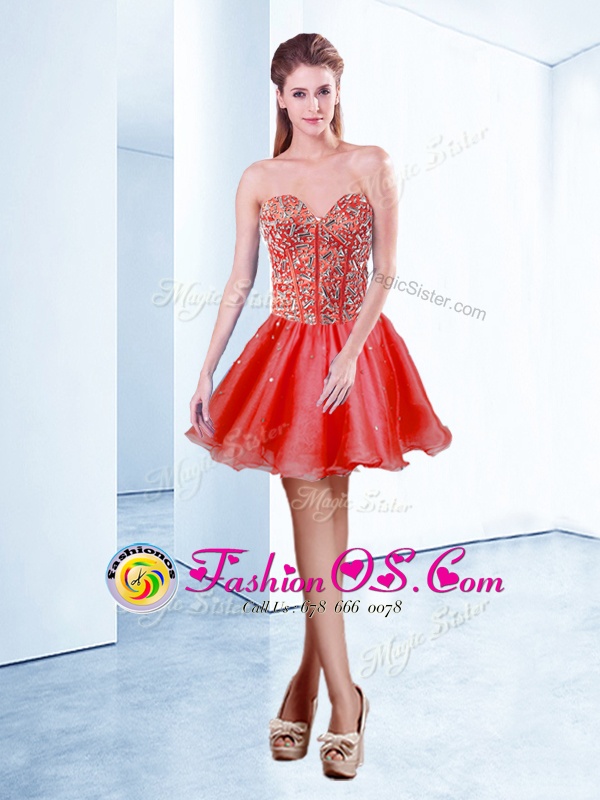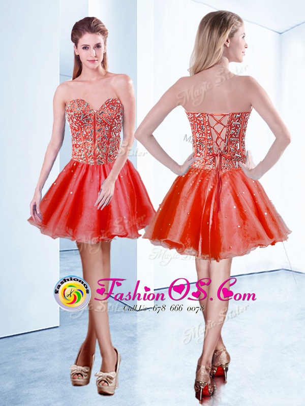 Custom Design Red Organza Lace Up V-neck Sleeveless Mini Length Cocktail Dresses Beading