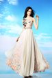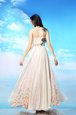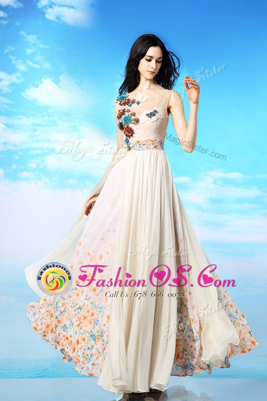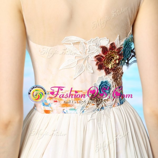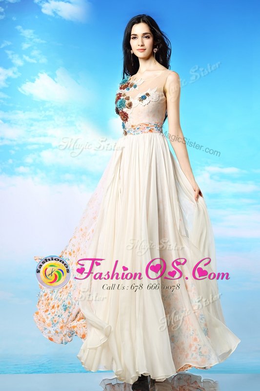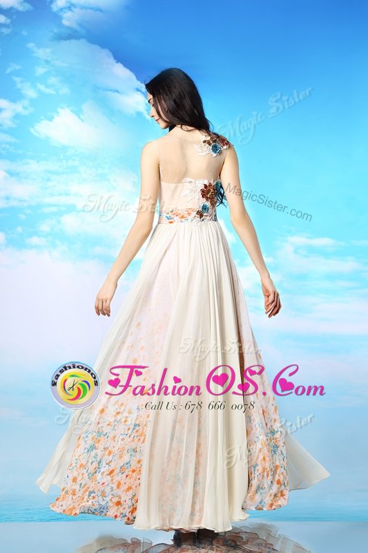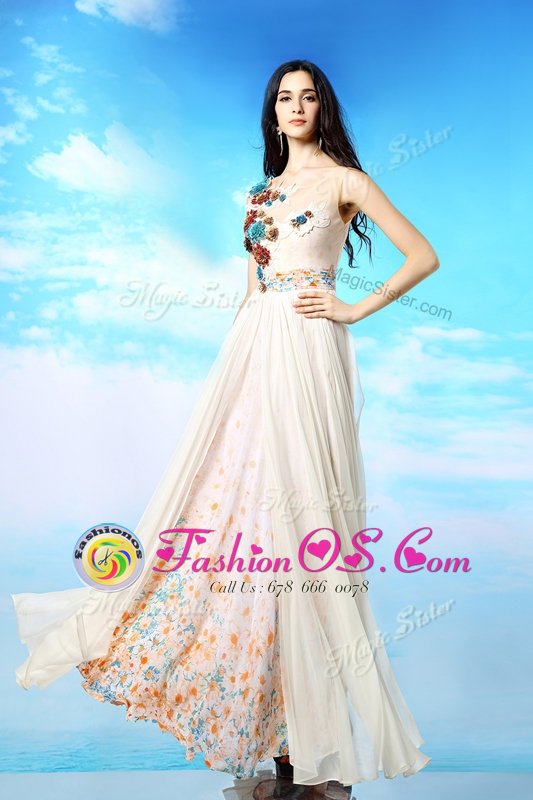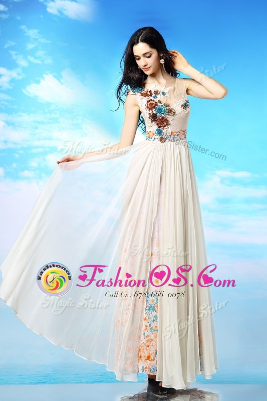 Home >  Prom Dresses >  Prom Dresses On Sale > Custom Design Scoop Sleeveless Ankle Length Appliques and Ruching and Pattern Side Zipper with White