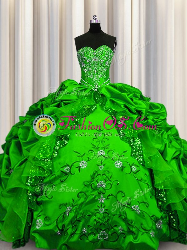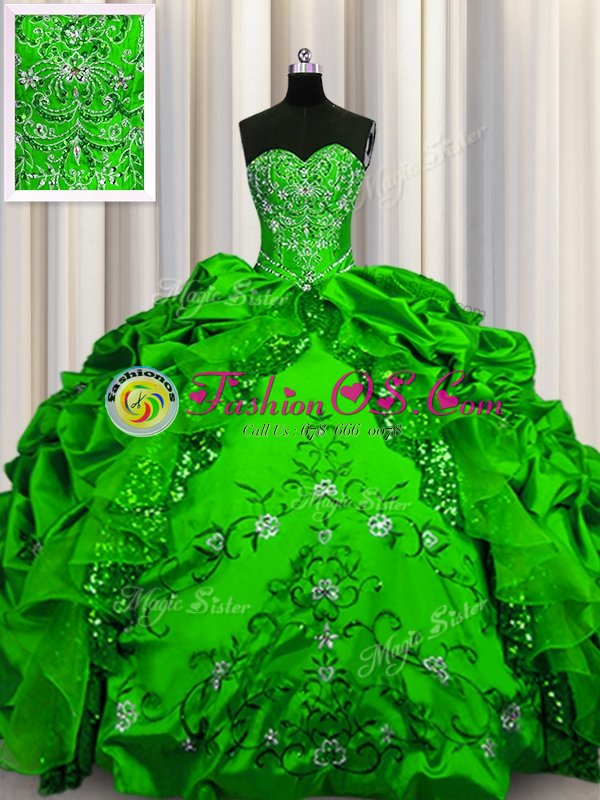 Home >  Quinceanera Dresses >  Cheap Quinceanera Dresses > Custom Design Sequins Sweetheart Lace Up Beading and Embroidery and Ruffles and Pick Ups Quinceanera Dresses Sleeveless