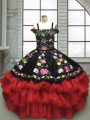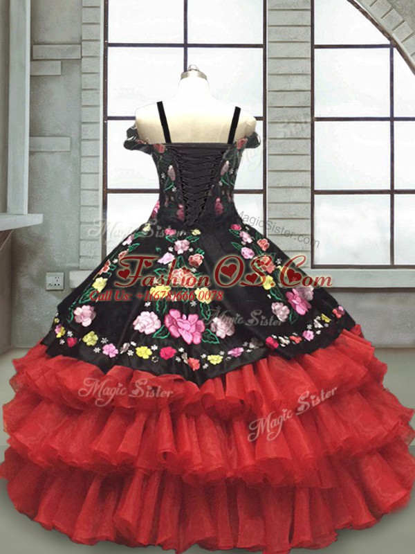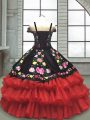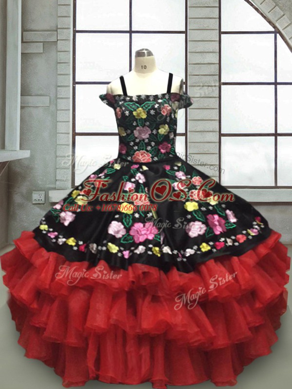 Custom Design Sleeveless Embroidery and Ruffled Layers Lace Up Little Girls Pageant Gowns