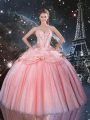 Custom Design Sleeveless Tulle Floor Length Lace Up Quinceanera Gown in Pink with Beading