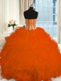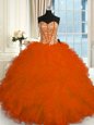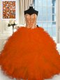 Custom Design Sweetheart Sleeveless Lace Up Sweet 16 Dresses Red Organza